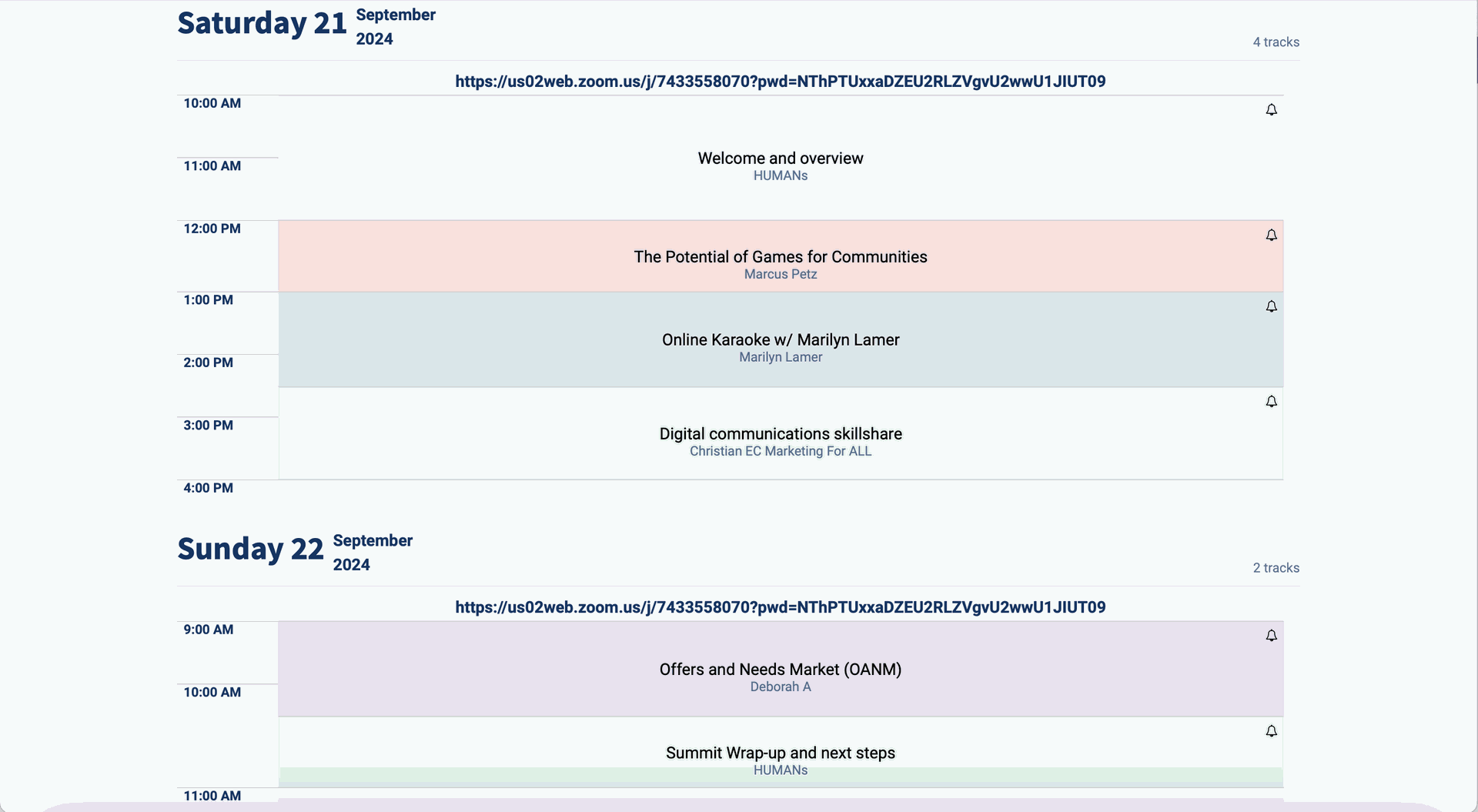 The Saturday 9/21/24 sessions start at 10am CDT and Sunday 9/22/24 at 9am CDT. Hope to see you!